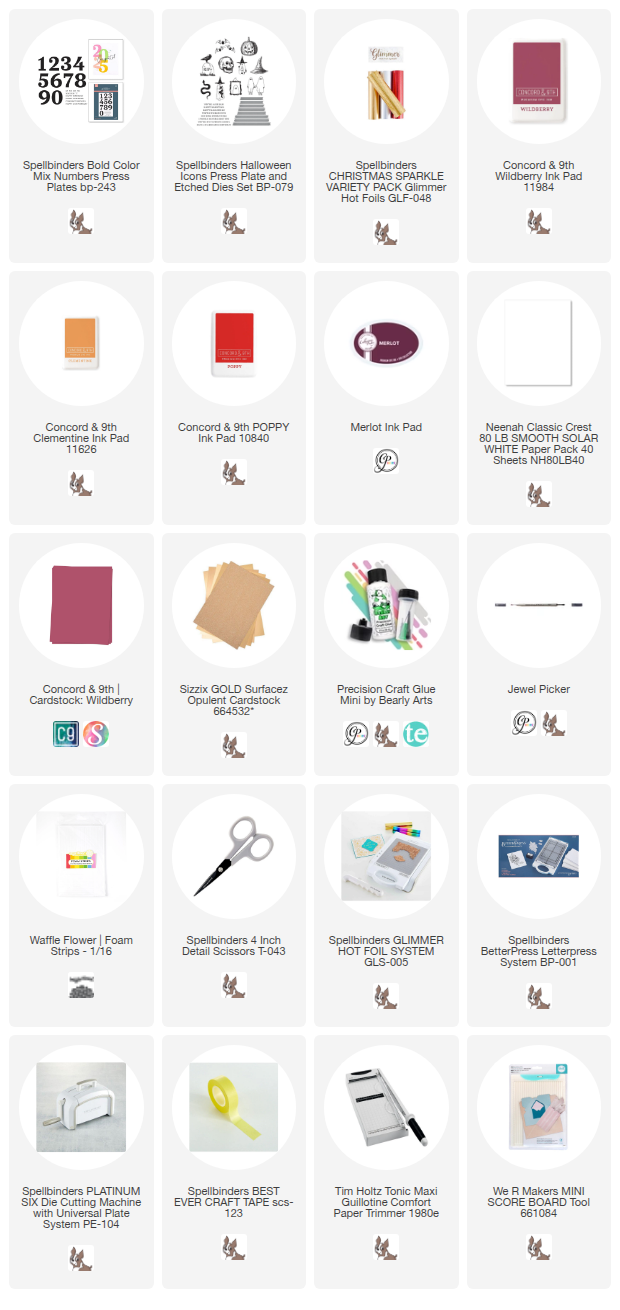 My first card for this month features products from Spellbinders, available from our December sponsor, Simon Says Stamp. The two sets featured here are the Bold Color Mix Numbers and the Halloween Icons Press Plate.