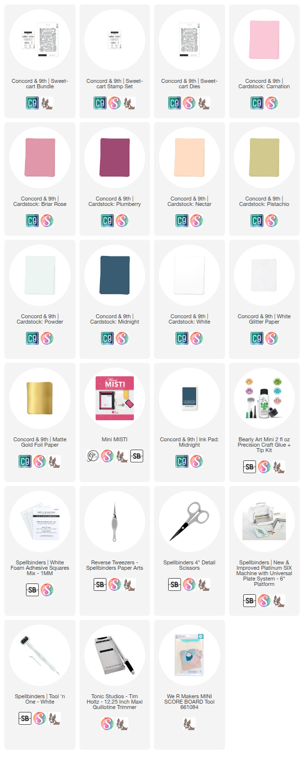 Hello again! Today's project for Concord & 9th's January Release features the Sweet-cart Bundle and this set looks amazing no matter how you use it! There are so many treat dies in this set that you'll never run out of ideas, plus can use the treats with or without the cart.